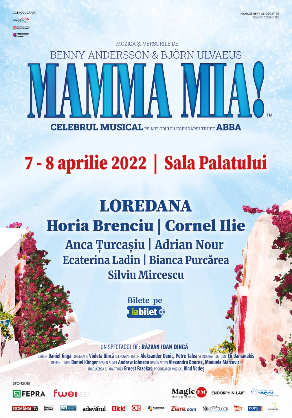 A vibrant and energetic poster for the beloved ABBA musical. The design captures the joyful, sun-soaked Mediterranean atmosphere of the show, with bold typography and warm colors that invite audiences into the feel-good experience.